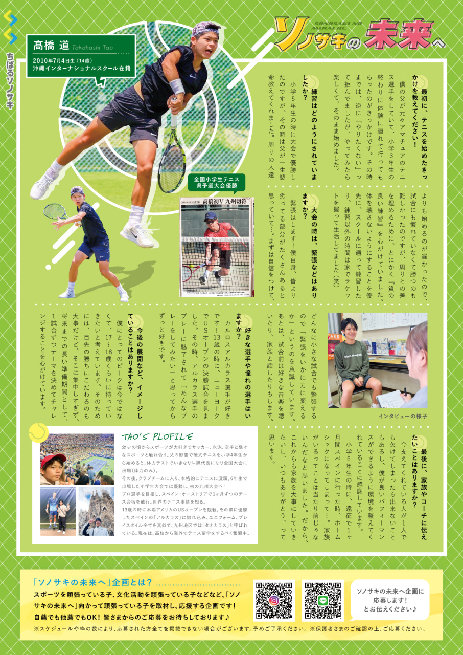 【ちばるソノサキ インタビューvol 4】沖縄インターナショナルスクール在籍テニス選手 髙橋 道さん