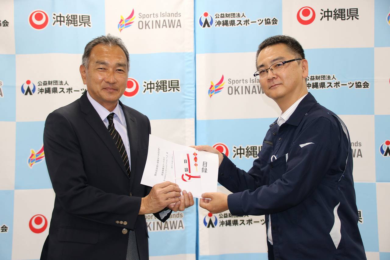 沖縄県体協スポーツ会館にて行われた合同寄付贈呈式